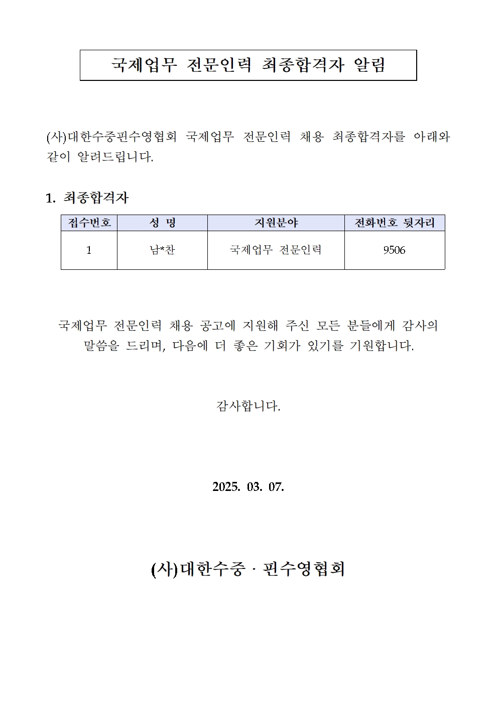(수중핀수영)국제업무 전문인력 최종합격자 발표.jpg